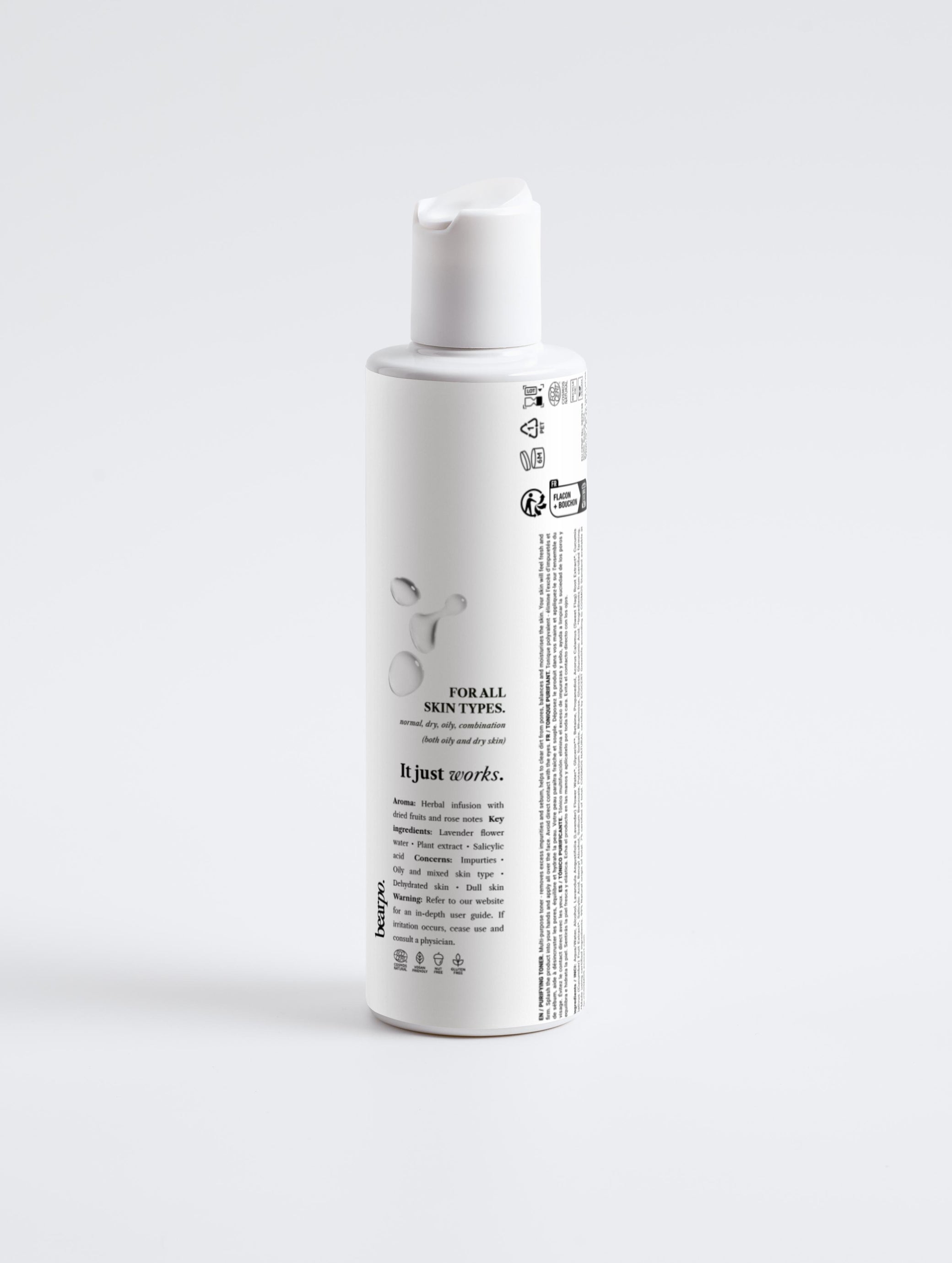 Open media in modal Purifying Toner, L'EAU PROPRE - bearpo., branded white bottle on gray background studio shot Open media in modal Purifying Toner, L'EAU PROPRE - bearpo., packaging, white toner bottle on gray background studio shot Open media in modal Purifying Toner, L'EAU PROPRE - bearpo.